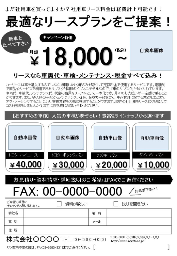 社用車のカーリースFAXDMテンプレートです。